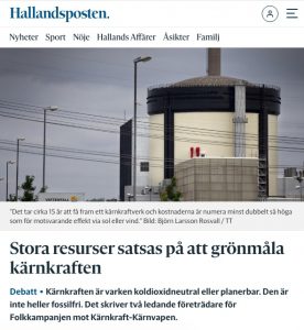 Läs hela artikeln ”Stora resurser satsas på att grönmåla kärnkraften” i Hallandsposten
