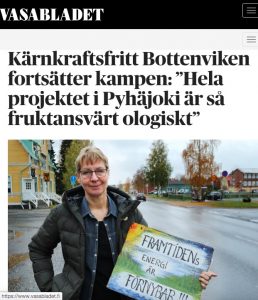 Läs hela artikeln ”Kärnkraftsfritt Bottenviken fortsätter kampen: ’Hela projektet i Pyhäjoki är så fruktansvärt ologiskt'”