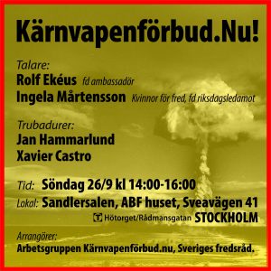 55 stater har nu ratificerat FN:s konvention som förbjuder kärnvapen, vilket blev lag i FN-systemet i januari. Tyvärr hör Sverige inte till dessa fast Sverige var med om att lansera konventionen i FN och har en stark tradition av motstånd mot kärnvapen och tillit till FN. Flera opinionsundersökningar har visat att en stor majoritet vill att Sverige ansluter sig. Det är också klarlagt att FN-konventionen inte strider mot ickespridningsavtalet och det tillhörande Stockholmsinitiativet.