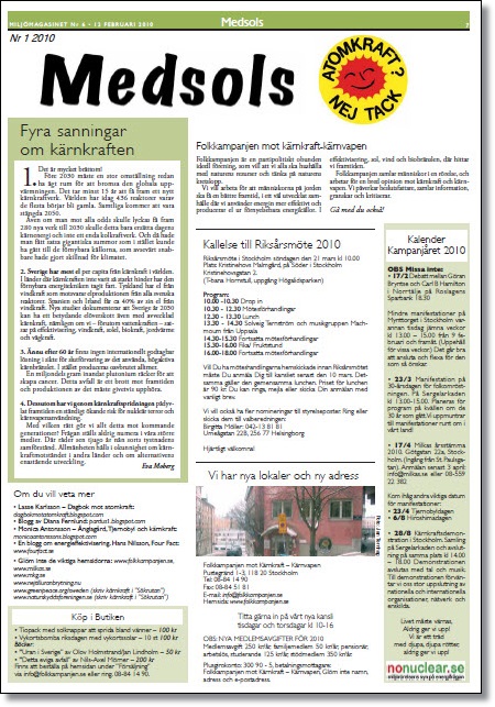 Miljömagasinet nr 6 / 2010 läs bl a om: - svikna löften i energipolitiken - på jakt efter uran och gas - vintern avslöjar svensk kärnkraft - vi har nya lokaler och ny adress - kallelse till Riksårsmöte 2010 - kalender kampanjåret 2010