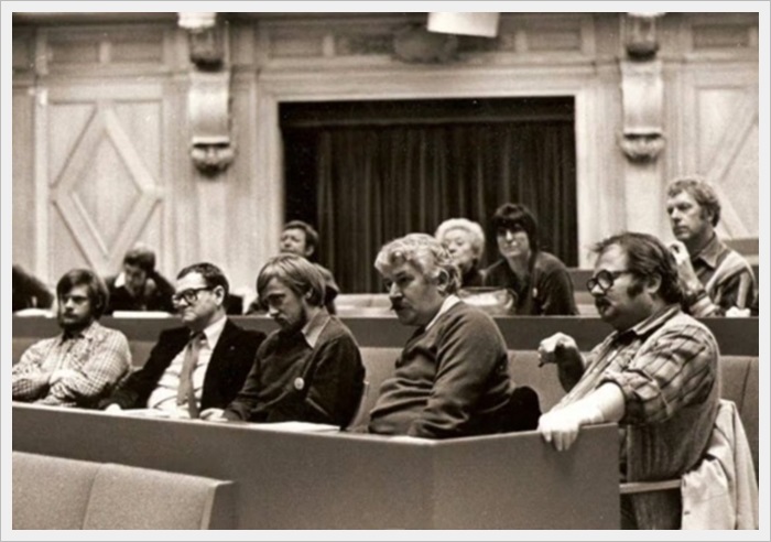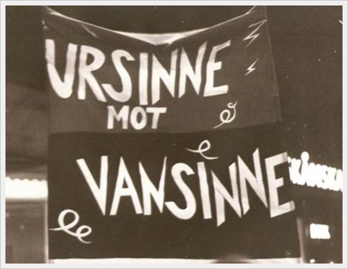 Demonstration på Lidingö 1981, längst till höger Lasse och Inger Månsson. |