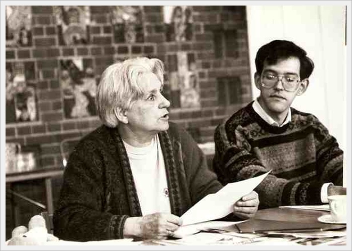 Agneta Askelöf intervjuar ordf. Aino Blomqvist på