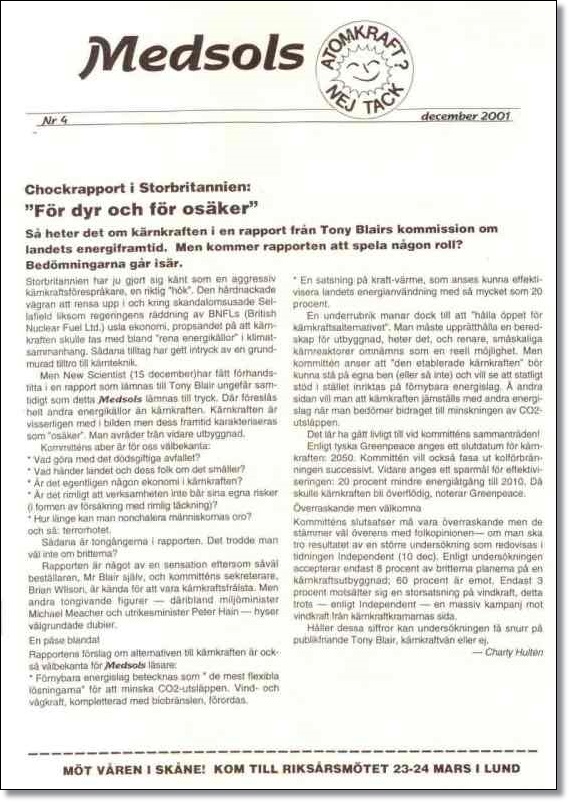Medsols nr 4 / 2001 (dec 2001) - chockrapport för Storbritannien - senaste nytt från MOX - kallelse till Riksårsmöte i Lund |