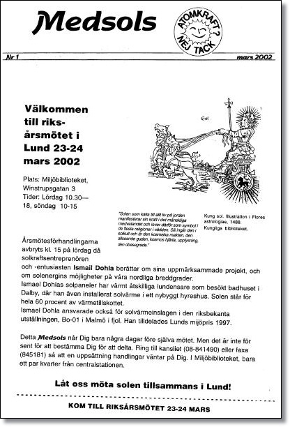 Medsols nr 1 / 2002 (jun 2002) läs bl a om: - nu ska Barsebäck väck - MOX i Oskarshamn - Sellafield – ett kapitel för sig - vem bestämmer avvecklingen, folket/bolagen? |