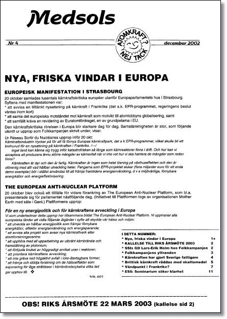 Medsols nr 3 / 2002 (aug 2002) läs bl a om: - nya friska vindar i Europa - kärnkraften en förlustaffär - dags att skrota Euroatom - Natos kärnvapendoktrin brottslig |